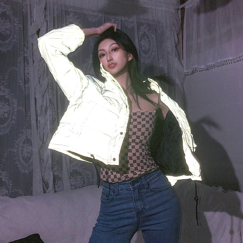 Domineering Bombing Street Warm High-neck Reflective Jacket
